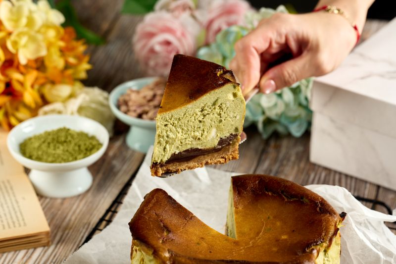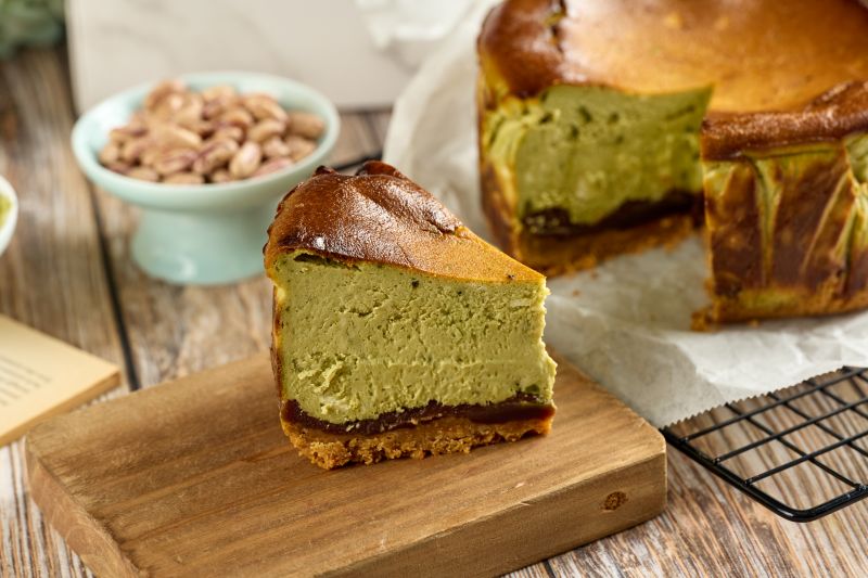 日本純正靜岡抹茶粉與巴斯克蛋糕的碰撞,融合成一道濃濃日本味的午後甜點,加上綿密甜香的萬丹紅豆予以點綴,再舖上西班牙皇室最愛的消化餅為基底,是款層次非常豐富的巴斯克蛋糕。